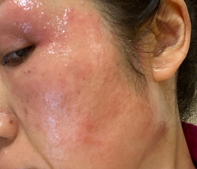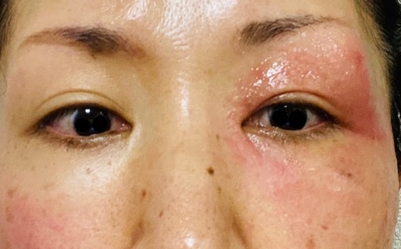 少し忙しく動くと再び左顔面全体に赤みと痒みとチリチリした痛みが戻ってきた。